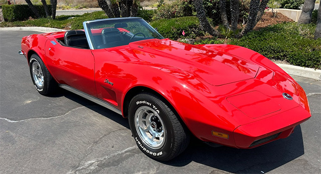 And this example? It’s a survivor in every sense, over five decades later, it still wears much of its original paint and interior. Under the hood beats its numbers-matching L82 350ci V8, backed by the smooth Turbo-Hydramatic automatic transmission. This car has clearly lived a pampered life, and it shows! Fully optioned with: Turbo-Fire L82 350ci V8 Turbo-Hydramatic 3-speed automatic Air conditioning Power windows Custom deluxe shoulder belts Auxiliary hard top Black vinyl soft top Rear window defogger Power steering AM/FM stereo radio Black custom leather interior Polished aluminum YJ8 wheels wrapped in BFGoodrich Radial T/As. From every angle, this ’73 radiates attitude, class, and originality. It runs strong, drives tight, and turns heads wherever it goes.